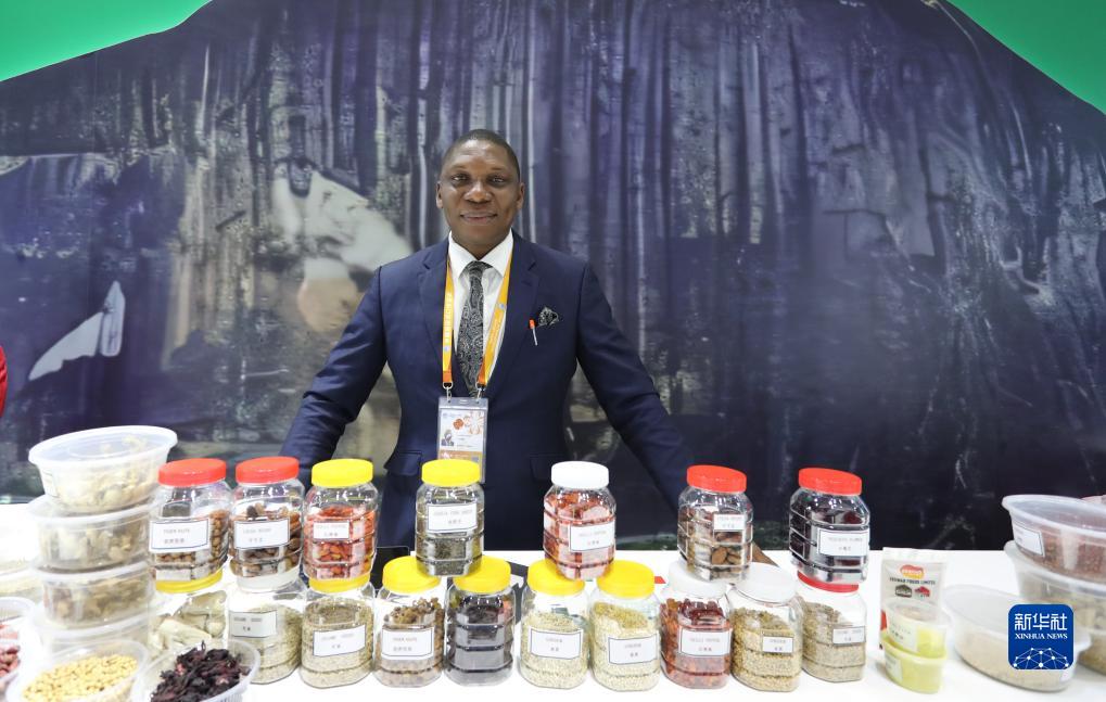 11月6日,來(lái)自尼日利亞的丹尼爾站在擺滿(mǎn)他經(jīng)營(yíng)的貨物樣品的展柜后。丹尼爾來(lái)中國三年了,這是他第二次參加進(jìn)博會(huì ),他希望今年能在中國把公司開(kāi)起來(lái),進(jìn)博會(huì )他會(huì )一直都來(lái)參加。