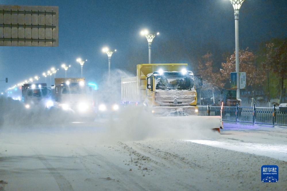 11月6日,清雪車(chē)在哈爾濱友誼西路上清除路面積雪。