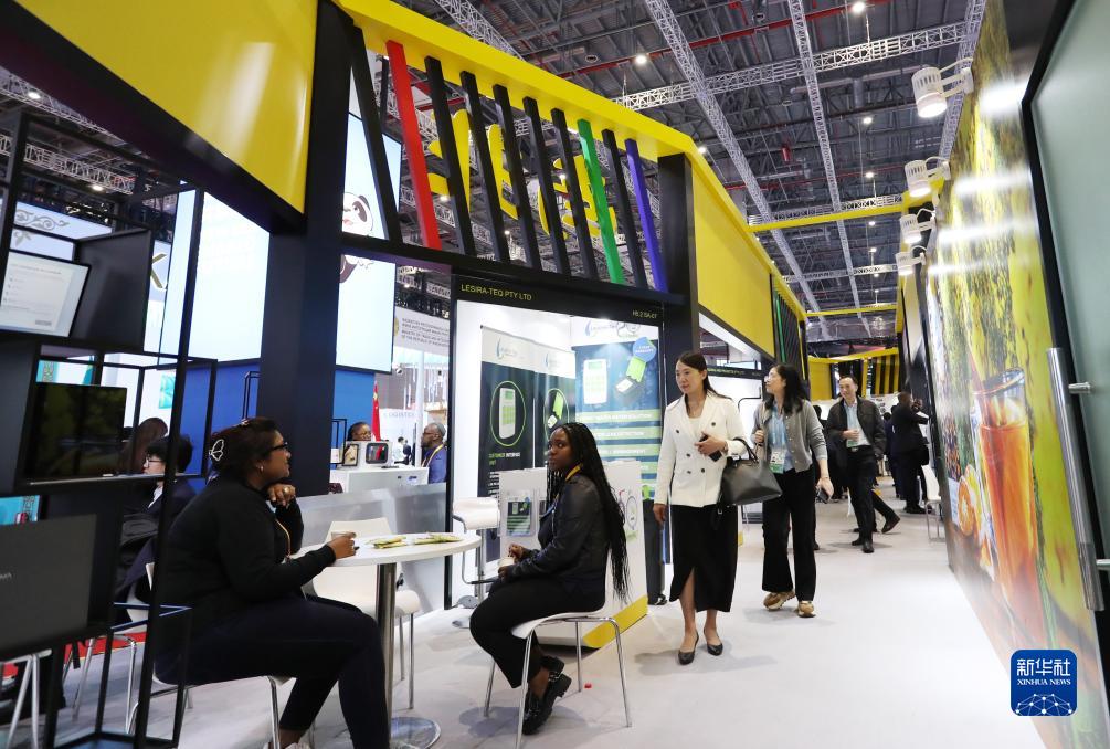 11月6日,參觀(guān)者在第六屆進(jìn)博會(huì )國家展南非展臺參觀(guān)。
