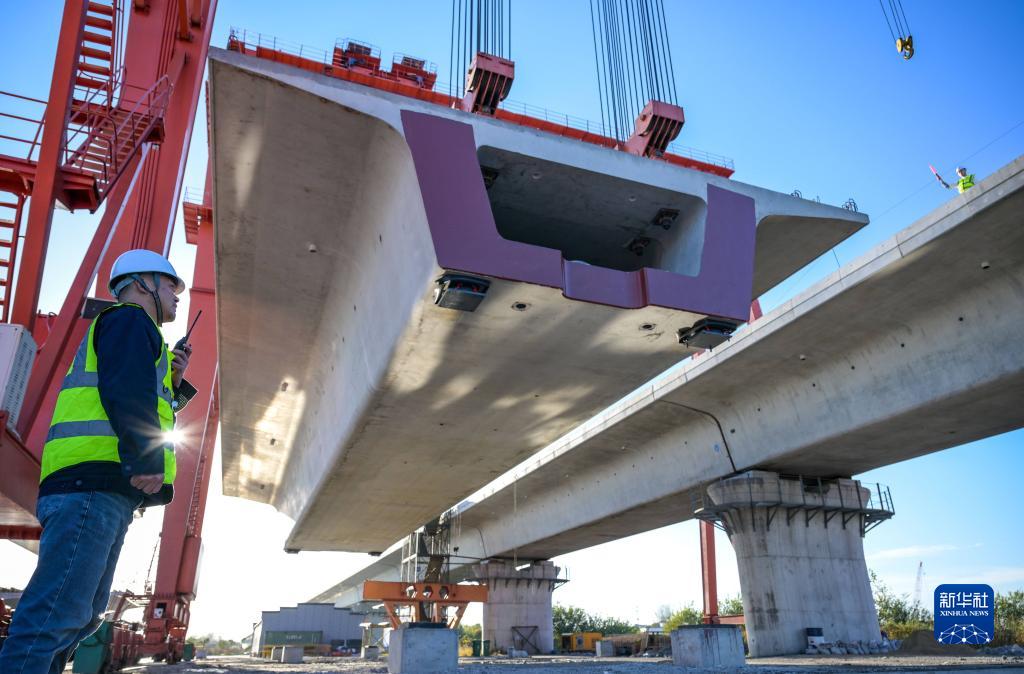這是11月6日拍攝的中鐵四局合新鐵路安徽段提梁施工現場(chǎng)。