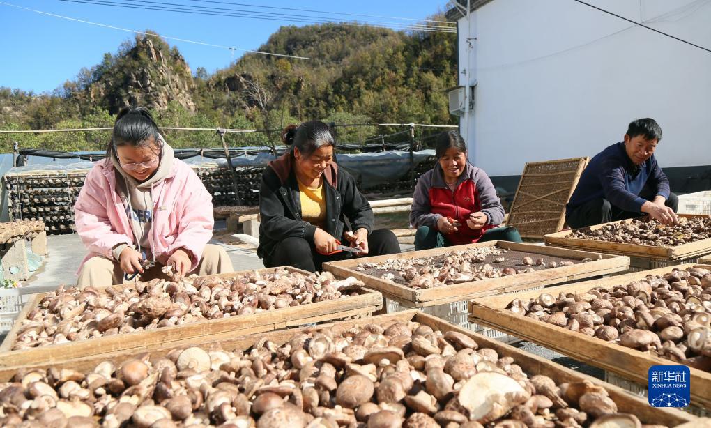 11月6日,在河南省洛陽(yáng)市汝陽(yáng)縣靳村鄉石寨村,農民在挑揀香菇。