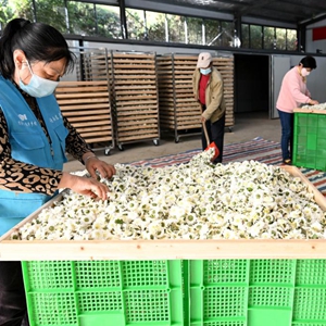 近日,安徽省蕪湖市繁昌區峨山鎮東島村貢菊種植基地的菊花進(jìn)入收獲期,當地村民搶抓晴好天氣采摘、加工。近年來(lái),東島村大力發(fā)展菊花產(chǎn)業(yè),采取“合作社+種植大戶(hù)+農戶(hù)”共同經(jīng)營(yíng)的模式,通過(guò)土地流轉、用工、分紅等方式幫助當地群眾增收。