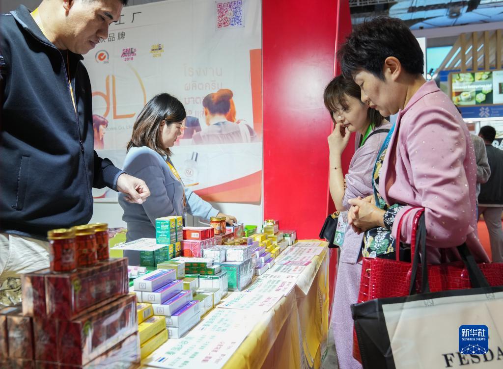 11月7日,在第六屆進(jìn)博會(huì )消費品展區,泰國參觀(guān)者在咨詢(xún)來(lái)自泰國的產(chǎn)品信息。