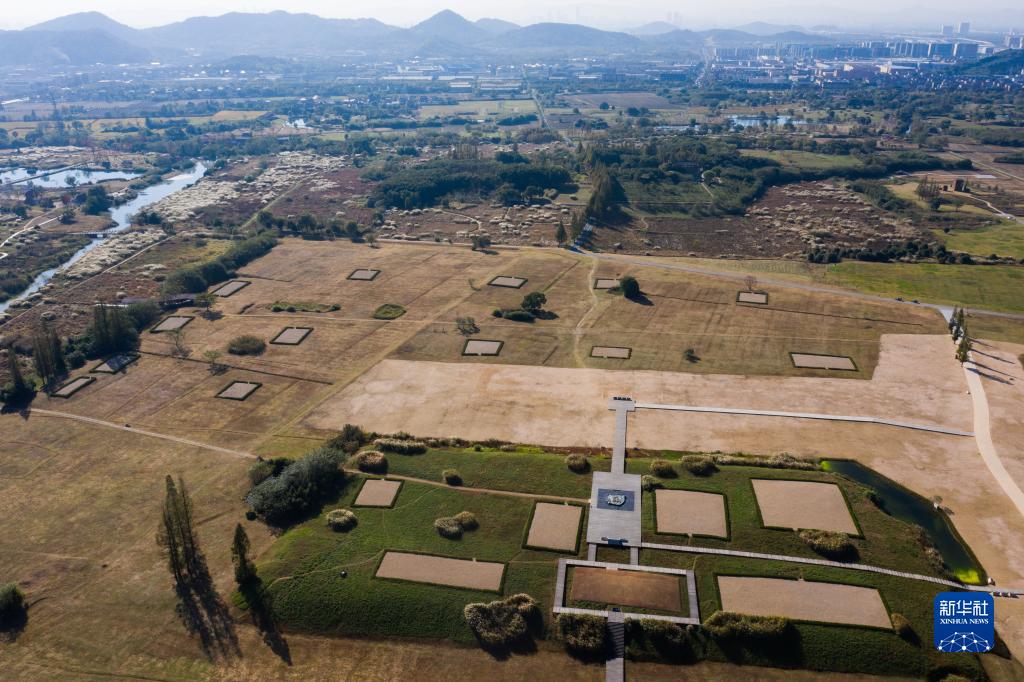 11月7日拍攝的良渚古城遺址公園內的莫角山遺址(無(wú)人機照片)。