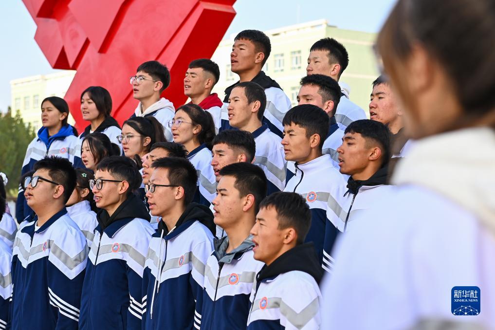 在新疆阿克陶縣雪松中學(xué),“紅杜鵑”合唱社團的學(xué)生在演唱紅色歌曲(11月7日攝)。