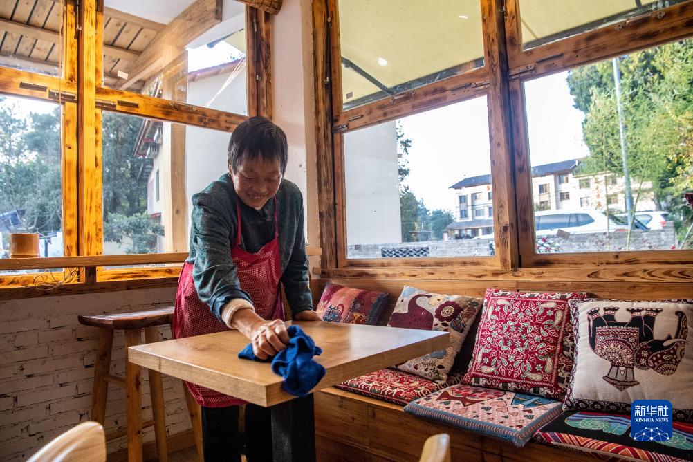 11月7日,在“178環(huán)線(xiàn)”上的一家名為“松見(jiàn)筱駐民宿”內,工作人員在整理房間。