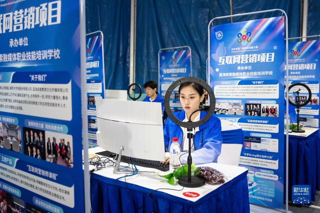 11月8日,在長(cháng)沙賀龍體育中心,參賽選手在進(jìn)行互聯(lián)網(wǎng)營(yíng)銷(xiāo)項目的比拼。