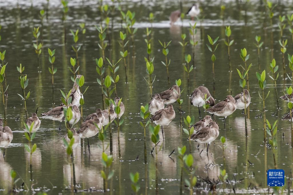 這是11月8日在海南東寨港(三江灣)生態(tài)修復項目拍攝的黑尾塍鷸。