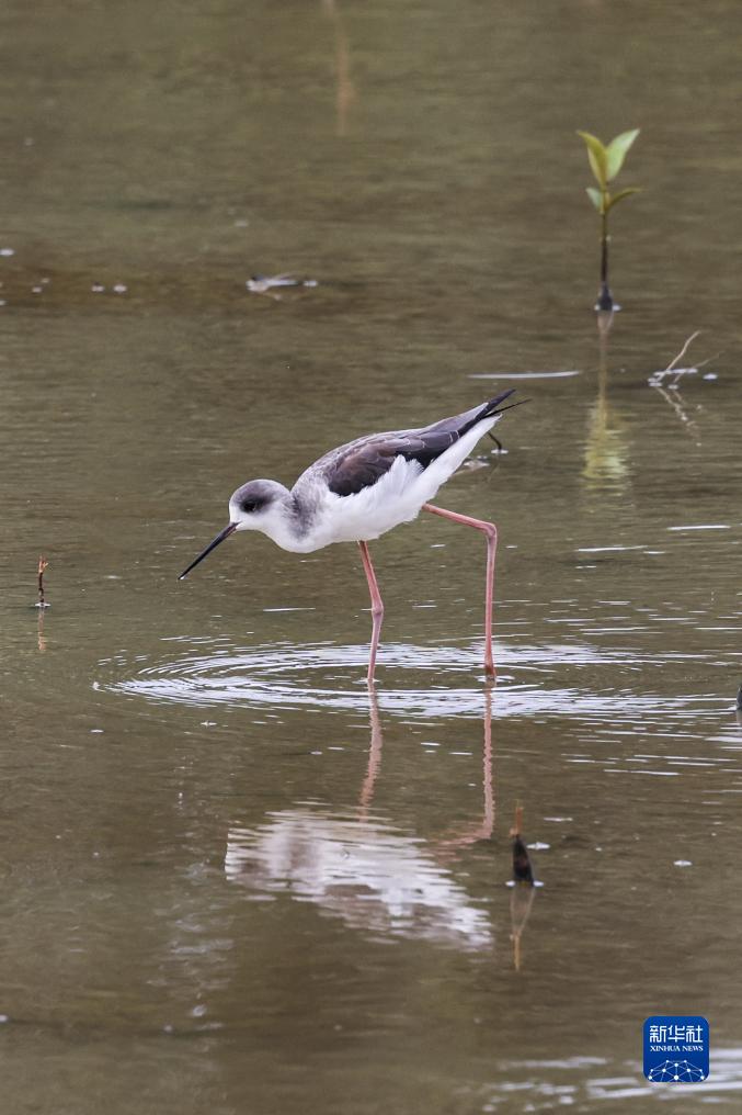 這是11月8日在海南東寨港(三江灣)生態(tài)修復項目拍攝的黑翅長(cháng)腳鷸。