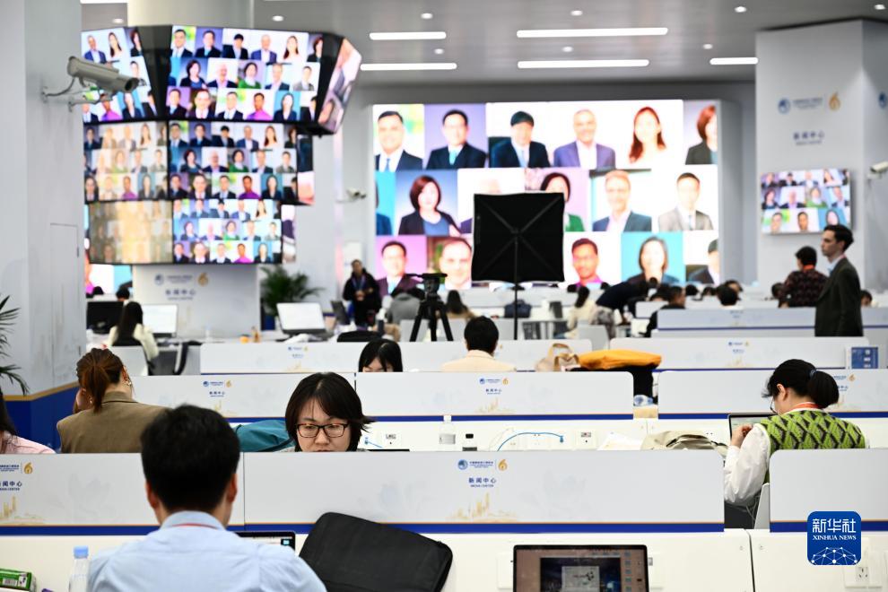 11月7日,記者們在新聞中心工作。