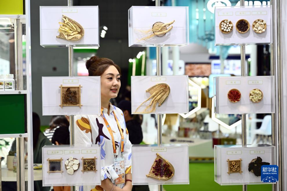 11月7日,觀(guān)眾參觀(guān)第六屆進(jìn)博會(huì )安利展位上的中藥材。