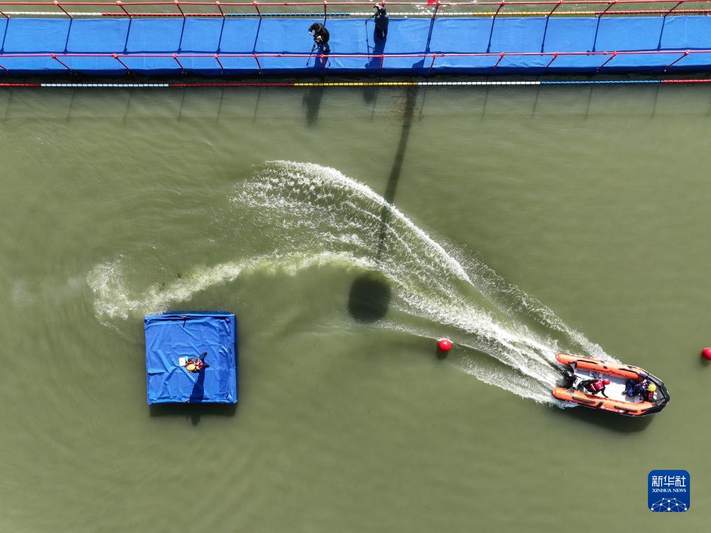 11月8日,消防員在南京玄武湖參加水域救援比賽(無(wú)人機照片)。