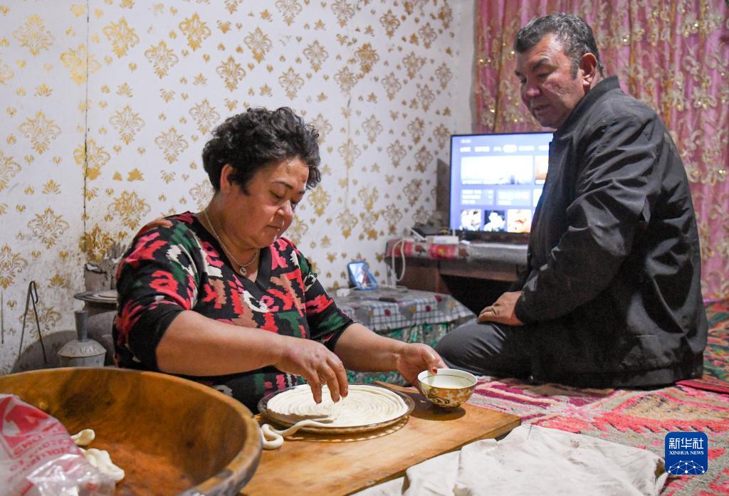 在新疆尉犁縣巴西買(mǎi)里村,爾肯(右)在家中與妻子商量添購拖拉機(10月20日攝)。