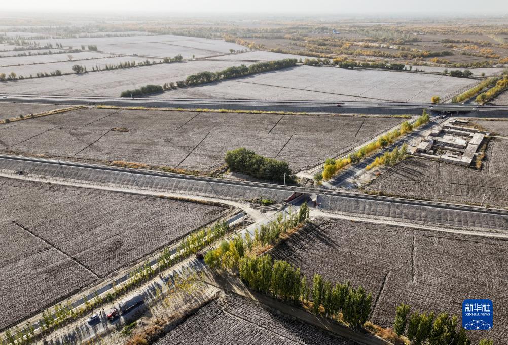 新疆尉犁縣境內大片的棉田(11月2日攝,無(wú)人機照片)。