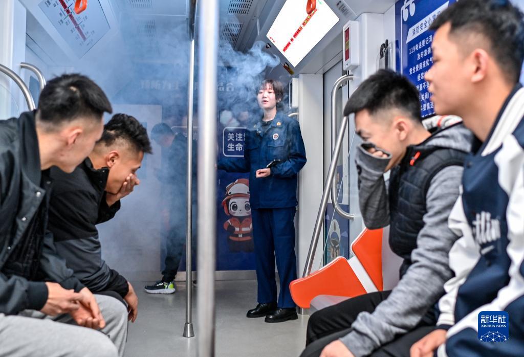 11月9日,觀(guān)眾在長(cháng)春市消防科普教育基地內的地鐵模擬區體驗消防逃生。