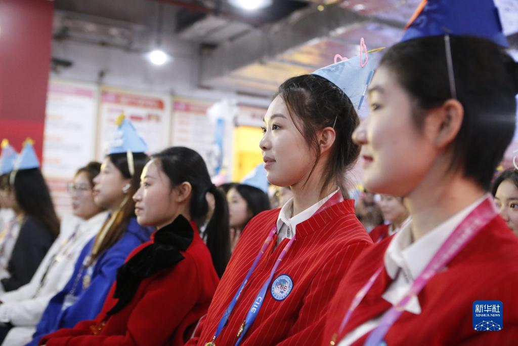 11月7日,在第六屆進(jìn)博會(huì )上,東華大學(xué)志愿者崔未驊(右二)在參加集體生日會(huì )。當日,進(jìn)博會(huì )志愿者之家為進(jìn)博會(huì )期間過(guò)生日的“小葉子”舉辦集體生日會(huì ),送上生日驚喜。