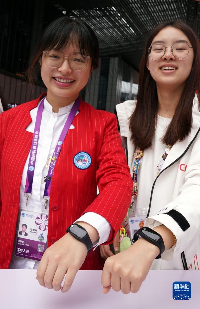 11月9日,志愿者展示服務(wù)保障組為“小葉子”們配發(fā)的數字化管理終端(智能手環(huán))。該平臺依托智能手環(huán),通過(guò)動(dòng)態(tài)監測和可視化顯示,對志愿者進(jìn)行數字化管理,為志愿者提供精心保障。