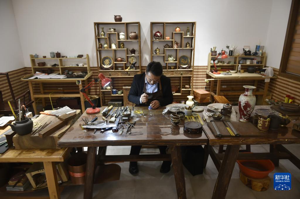 河南省郟縣金鑲玉制作技藝是國家級非物質(zhì)文化遺產(chǎn)代表性項目,歷史悠久,獨具文化內涵和藝術(shù)價(jià)值。據介紹,金鑲玉制作技藝原為對有瑕疵或破損的玉石、茶具等器物,用銅、錫等金屬絲片進(jìn)行掩飾、修補的鑲嵌工藝,后來(lái)逐步發(fā)展成為在陶瓷、紫砂等器物表面鑲嵌不同金屬(或合金)圖紋裝飾的獨特工藝。