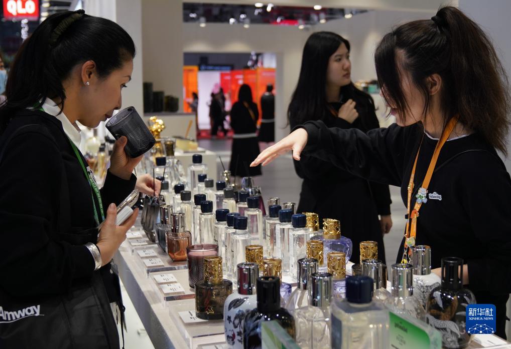 11月9日,在第六屆進(jìn)博會(huì )消費品展區,參觀(guān)者在欣賞比利時(shí)香薰蠟燭。
