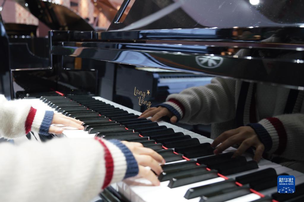 11月9日,在第六屆進(jìn)博會(huì )消費品展區,參觀(guān)者在施坦威展臺彈奏鋼琴。