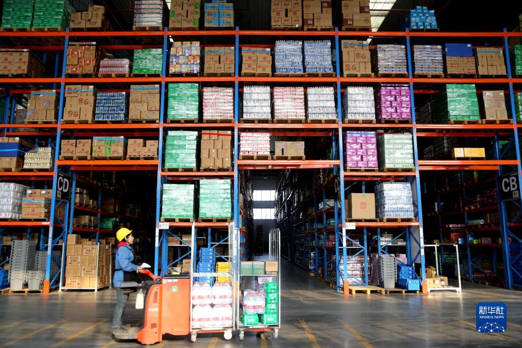 11月9日,江蘇省連云港市連云區一家電商物流倉庫,工作人員在轉運貨物。