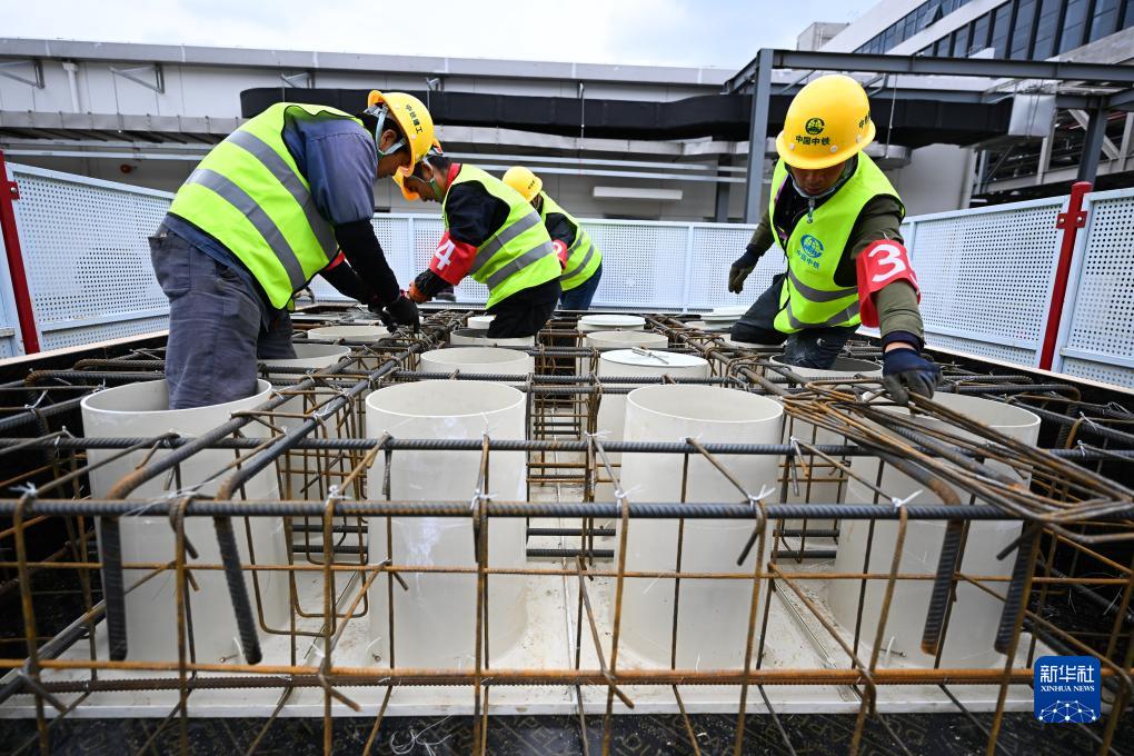 11月10日,工人在項目現場(chǎng)比賽。