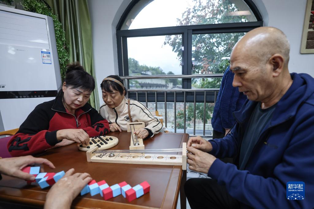 11月10日,在云和縣百齡幫鳳凰家園長(cháng)者養護中心的老年木玩活動(dòng)室內,老人們在玩益智木玩。云和縣民政部門(mén)積極在多個(gè)養老中心推進(jìn)木玩活動(dòng)室的建設,活動(dòng)室以益智類(lèi)、運動(dòng)類(lèi)、康復類(lèi)、康養類(lèi)等木制玩具為媒介,幫助老年人動(dòng)手動(dòng)腦,保持大腦健康活力。