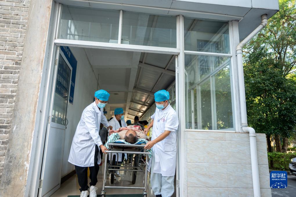 在畹町仁慈醫院,醫務(wù)人員護送一名拍完CT的病人返回病房(10月29日攝)。