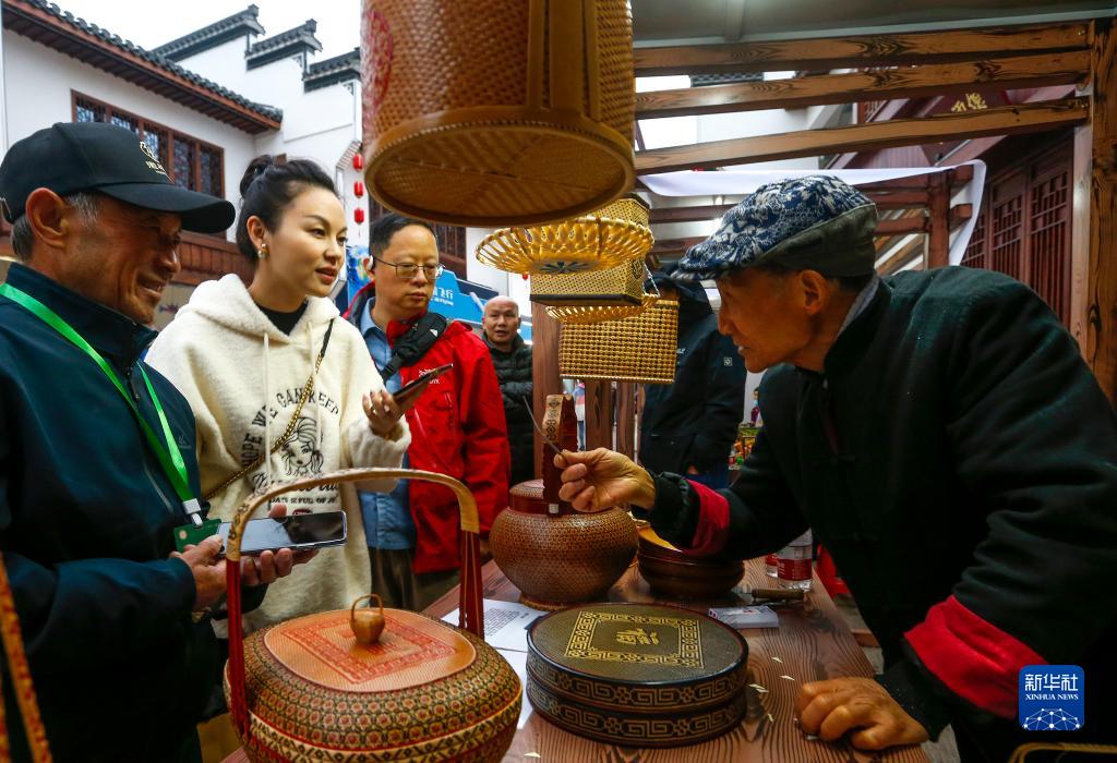11月10日,參觀(guān)者在第六屆中國非物質(zhì)文化遺產(chǎn)傳統技藝大展的“徽州竹編”展區了解展品。