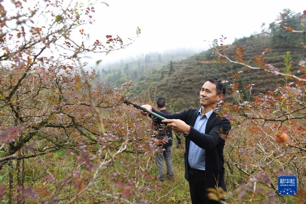 11月8日,貴州龍里縣谷腳鎮茶香村刺梨種植大戶(hù)燕啟富給刺梨剪枝。