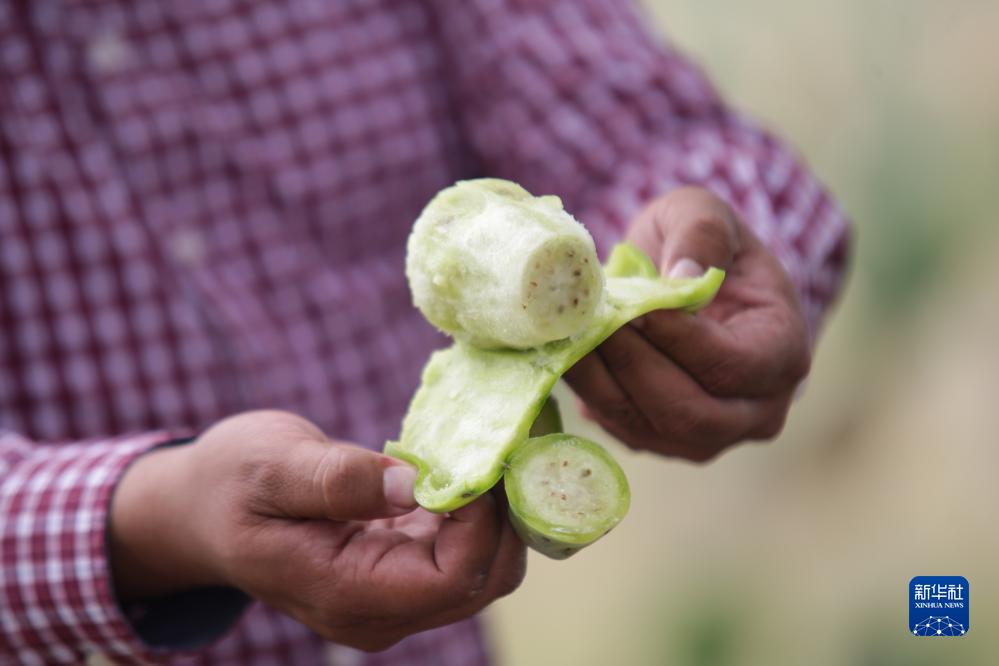 在墨西哥墨西哥州特奧蒂瓦坎,一名農民剝開(kāi)仙人掌果進(jìn)行展示(8月3日攝)。