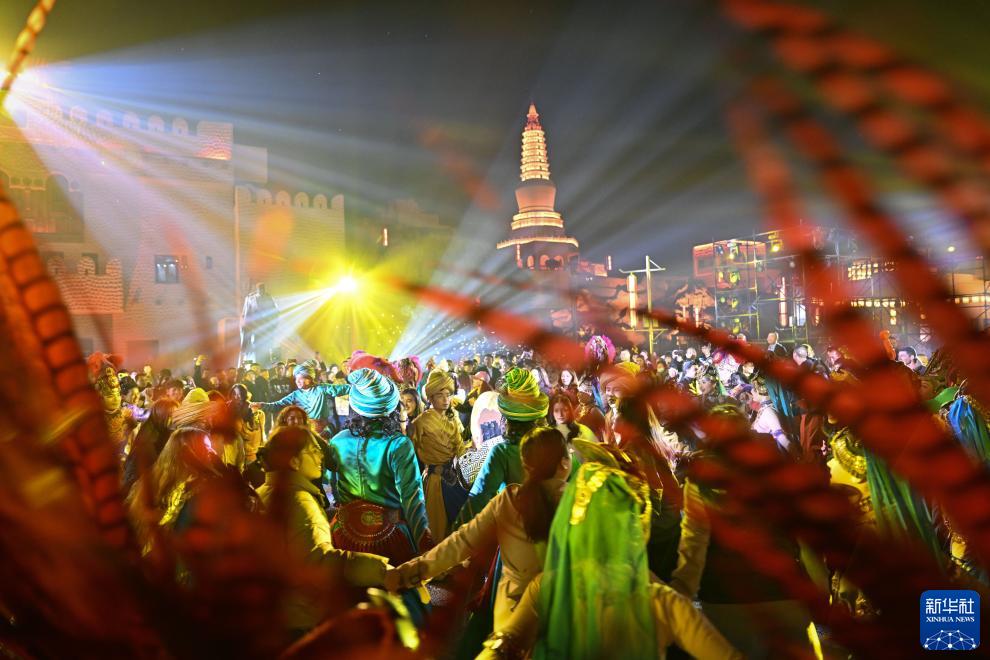 11月7日,游客和演員在約特干故城一起跳舞。