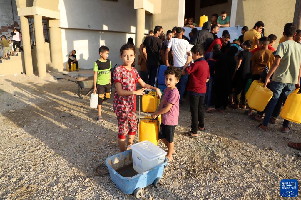 11月11日,人們在加沙地帶南部城市汗尤尼斯排隊打水。