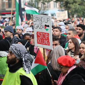 當日,眾多巴勒斯坦支持者在比利時(shí)布魯塞爾集會(huì ),呼吁盡快實(shí)現加沙?;?。