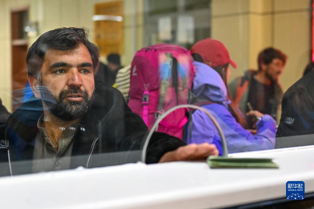 在新疆紅其拉甫口岸聯(lián)檢大廳,出境旅客辦理邊檢手續(11月6日攝)。
