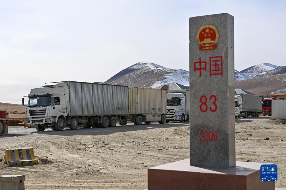 入境貨車(chē)進(jìn)入新疆卡拉蘇口岸(11月6日攝)。