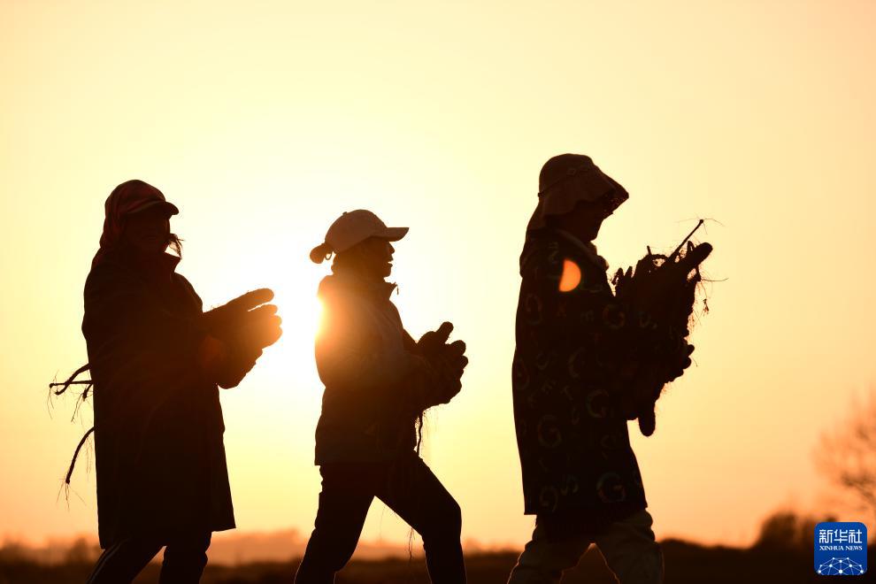 11月12日,在鄂托克前旗城川鎮章昂希里村的沙地農田,農民采收白玉山藥。