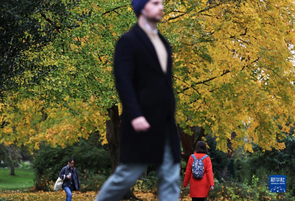 11月12日,人們走在法國巴黎蒙蘇里公園內。