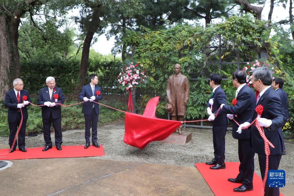 11月12日,嘉賓在日本福岡縣北九州市安川敬一郎舊宅內為雕塑作品《孫文先生像》揭幕。