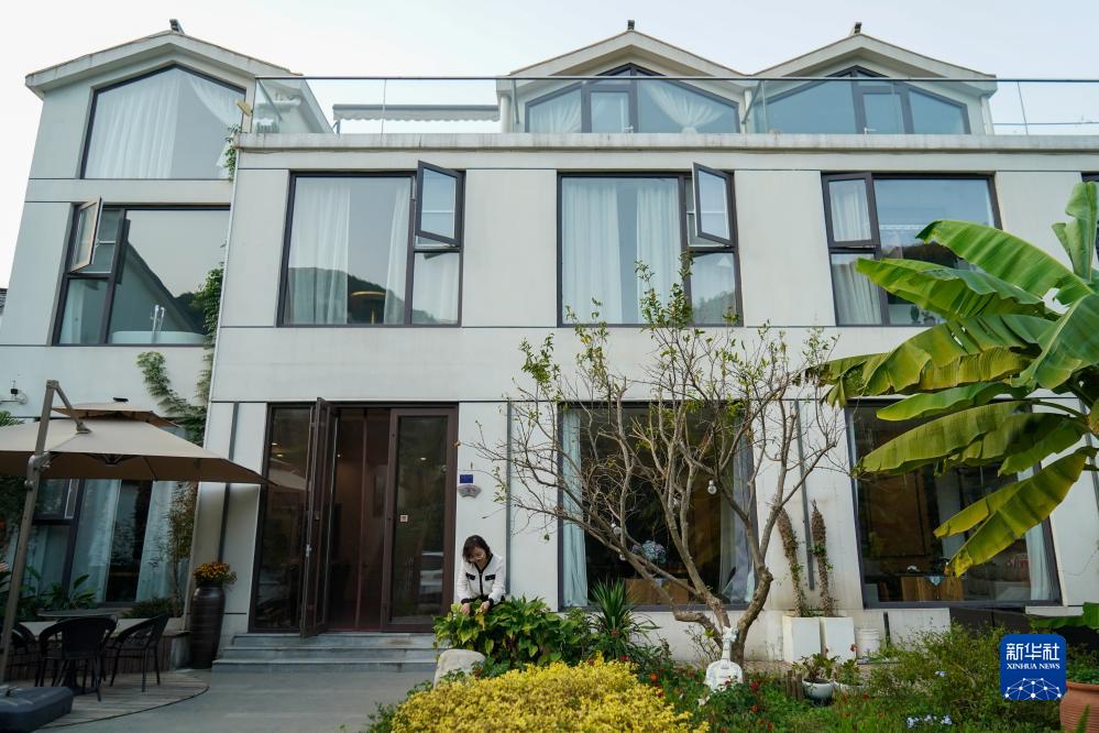 在樹(shù)山村一處民宿,主理人曹莉莉在打掃民宿庭院(11月2日攝)。