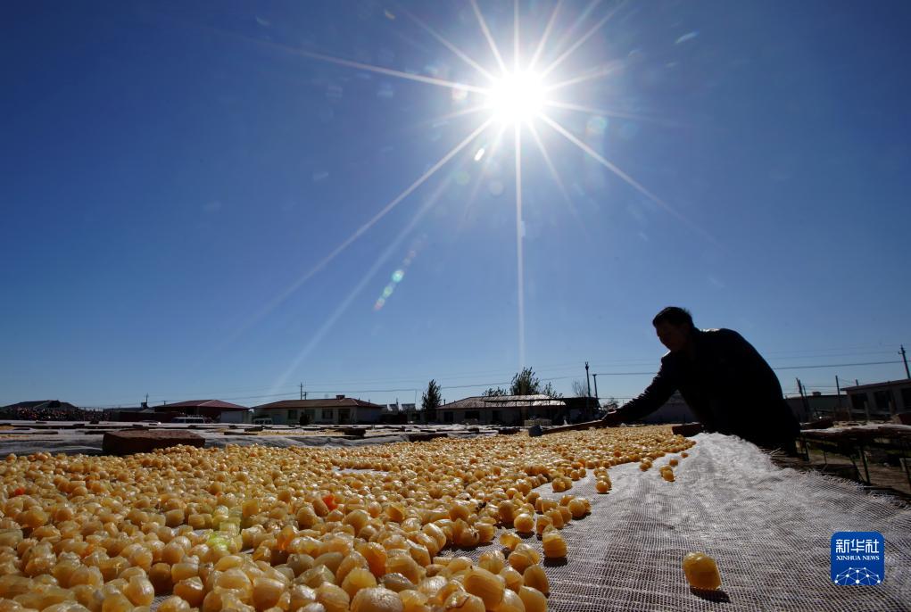 11月13日,秦皇島市昌黎縣團林鄉的扇貝養殖戶(hù)在晾曬收獲的扇貝柱。