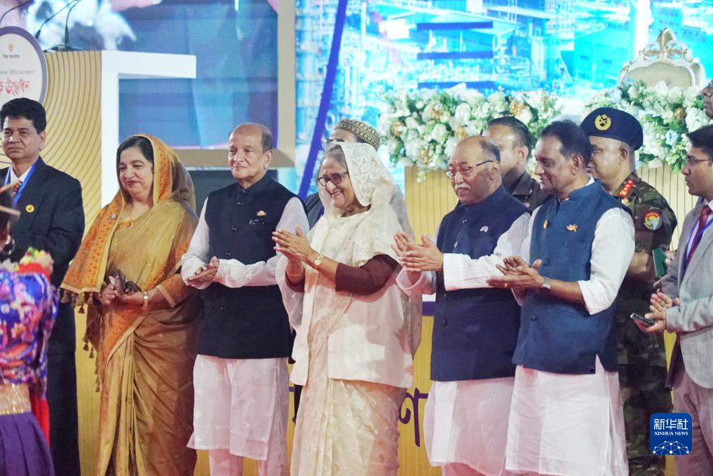 11月12日,孟加拉國總理謝赫·哈西娜(中)等在諾爾辛迪出席項目落成儀式。