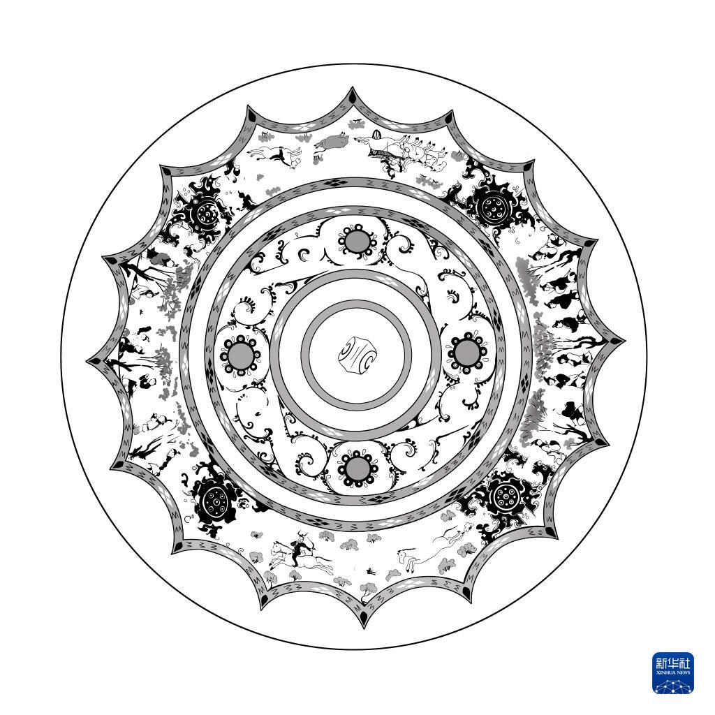 西漢彩繪人物車(chē)馬鏡圖案線(xiàn)稿圖。新華社發(fā) 李賀 繪制