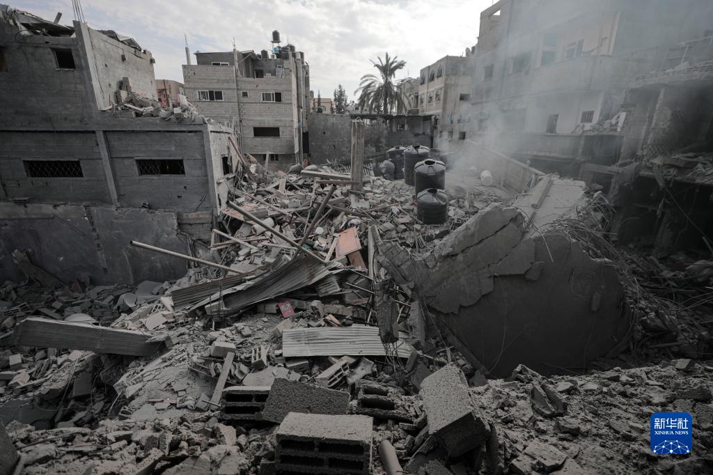這是11月13日在加沙地帶中部地區拍攝的一個(gè)遭以色列空襲的建筑廢墟。