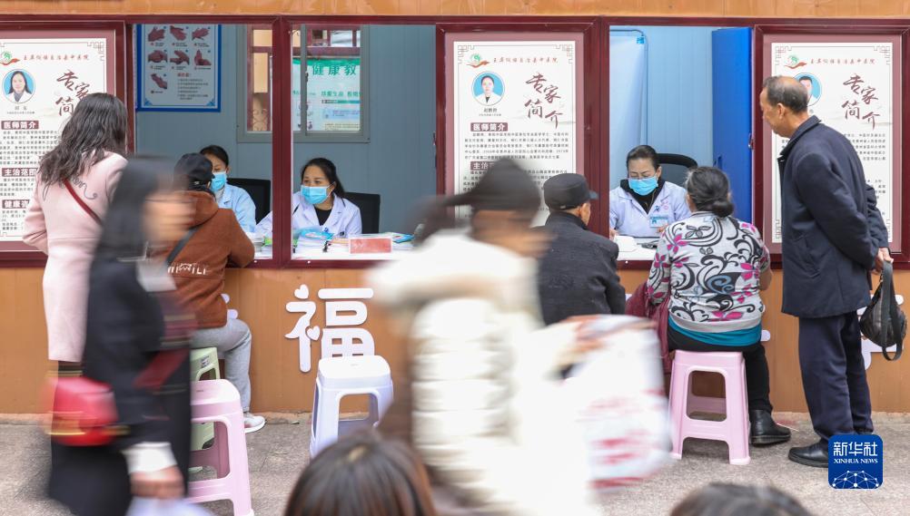 11月14日,在貴州省銅仁市玉屏侗族自治縣中醫院“健康小屋”,醫護人員免費為市民檢測血糖和血壓。