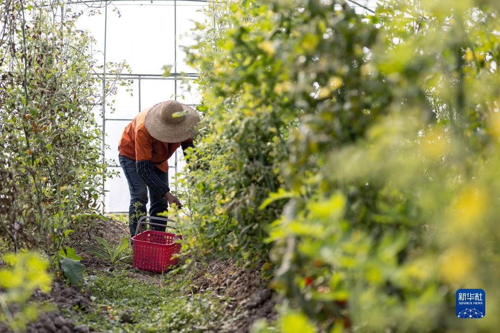 11月14日,浙江省湖州市吳興區八里店鎮一未來(lái)農場(chǎng),農戶(hù)在加強管護番茄種苗。
