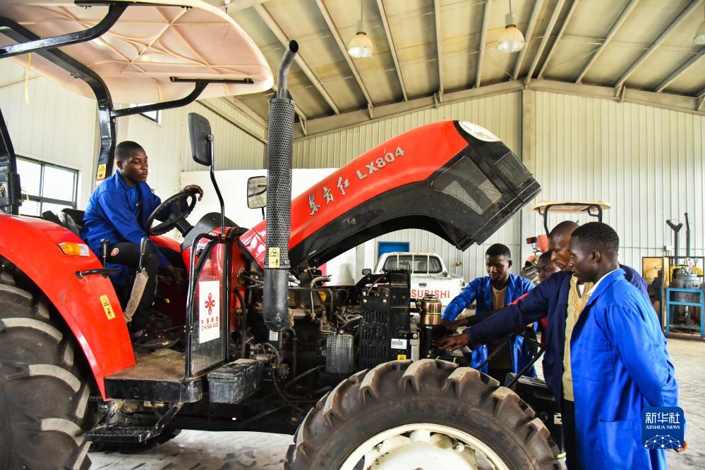 學(xué)生在喀麥隆亞巴西農業(yè)職業(yè)技術(shù)中學(xué)上拖拉機實(shí)踐課(2023年1月12日攝)。位于喀麥隆濱海大區亞巴西的農業(yè)職業(yè)技術(shù)中學(xué)是喀麥隆第一所農業(yè)技術(shù)學(xué)校。這所由中國援建的學(xué)校于2016年建成移交。