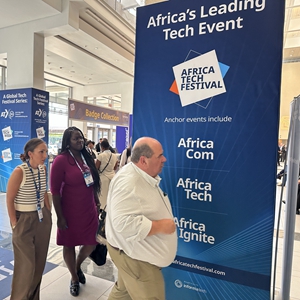 11月14日,人們在南非開(kāi)普敦參加2023年非洲通信展。