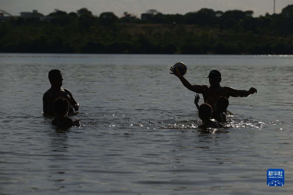 11月14日,人們在巴西首都巴西利亞帕拉諾阿湖中消暑。