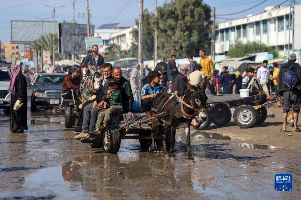 11月14日,在加沙地帶南部城市汗尤尼斯,人們乘驢車(chē)出行。